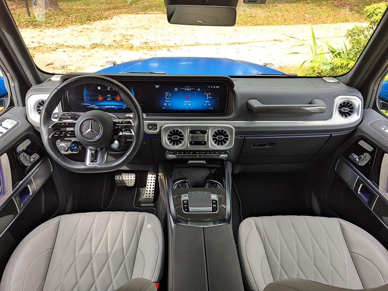 The result is that the 2025 G-Class drives like a modern SUV. We don’t mean it has the best ride and handling of any luxury SUV; a Land Rover Range Rover or BMW X7 would be smoother yet more agile, to say nothing of a performance-focused model like the Porsche Cayenne. But the G-Wagen has become credible. You can fall for its charm without being beaten up by it. The 2025 G-Class also includes modern driver aids like adaptive cruise control and lane-keeping steering assistance.