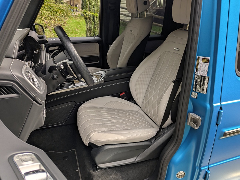 Until 2018, the G-Class did no better than wrapping its 1979-grade seats in fancy leather. Car and Driver magazine once described this Benz's front seats as “‘something to sit on,’ the way an overturned bucket or a knee-high rock will do when the only alternative is standing.” Today, they’re every bit the seats of a luxury car – wider, better shaped, and equipped with heating, ventilation, massaging (new this year), and even bolsters that automatically expand to hold you in place as you go around a curve.